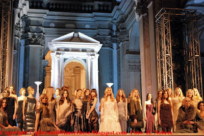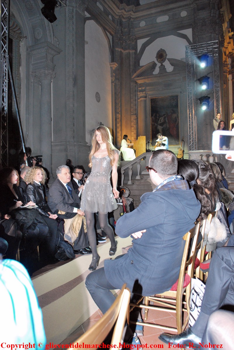Una alla volta sono scese dalla suggestiva scalinata con balaustra marmorea, capolavoro del Buontalenti, per sfilare davanti ad un pubblico estasiato, per poi risalire nuovamente le scale dalla parte opposta e posizionarsi nuovamente sull’altare. La scena finale: 30 donne vestite con estrema eleganza formavano un quadro unico di grande bellezza tale da essere un unicum con le opere d’arte poste alle pareti della chiesa (all’interno si conserva anche una Madonna in Trono di Giotto, San Giuliano di Masolino).