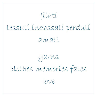 Filati è una raccolta di textiles, un tempo abiti da cerimonia, provenienti da differenti culture e realizzati con filati particolarmente rari e costosi. Recuperati, sanati, allestiti, oggi sono oggetti d’Arte Tessile.