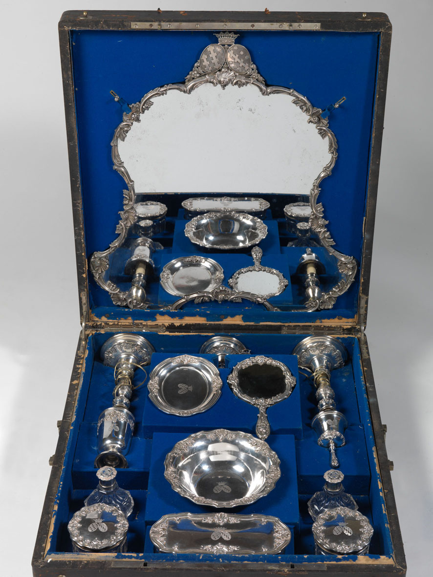 Martedì 24 maggio sarà l’asta di Argenti, gioielli e orologi da polso. Tra gli argenti, si segnala un importante servito da toilette, proveniente dall’Austria-Ungheria, della seconda metà del secolo XIX, in argento sbalzato e cesellato, conservato entro un bellissimo astuccio coevo. Ogni pezzo reca inciso lo stemma nobiliare delle famiglie Salviati ed Aldobrandini, entro scatola firmata J. C. Klinkosch K. K. Hof & Kammer Lieferant, Wien (stima 7.000/8.000 euro).