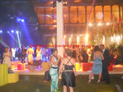 Dress code Glamorous e la festa abbia inizio…..Il cortile interno del palazzo, unico esempio in città con doppio ordine di logge architravate, trasformato in un verdeggiante giardino, con tanto di erba e rigogliose piante, palco centrale e piantine che “cadono” dal cielo.